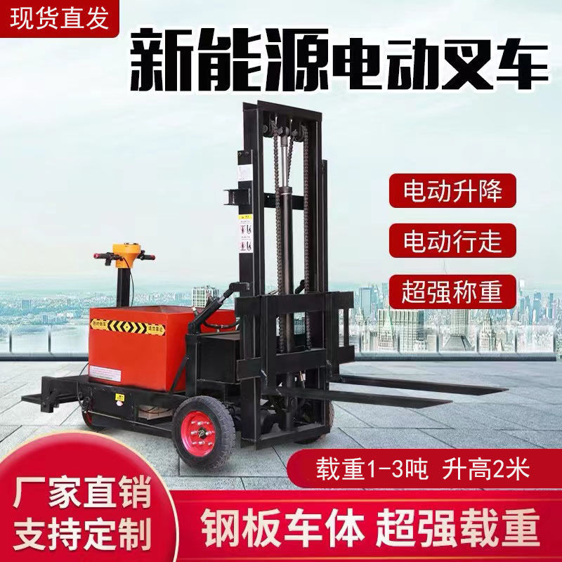 望都县小型电动叉车1吨站驾式2吨液压升高铲车全自动仓储堆高车